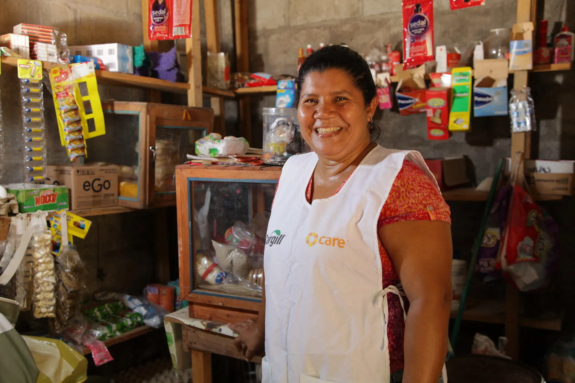“This crisis has affected us a lot,” Reina says. “We have been locked up and I have not been able to sell my products because I have to move to the market to buy supplies and right now, we are not able to do so. The grocery store has helped us avoid going hungry these last 15 days, but we only had two days of food left when CARE called us to deliver a package of rations. With that help we are surviving.”